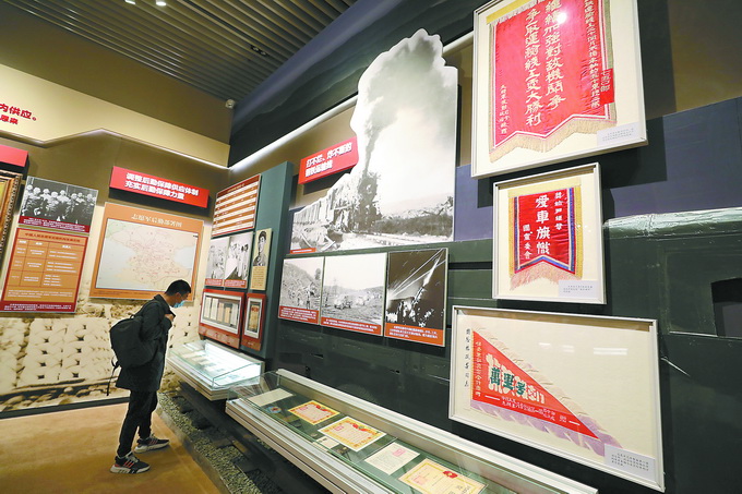 展厅里,巨幅作战地图、各种旗帜徽章,还有缴获的武器等大量有代表性的文物静静陈列,平均每米展线陈列3件以上文物,配合运用油画、国画、雕塑等艺术品,增强了历史厚重感。