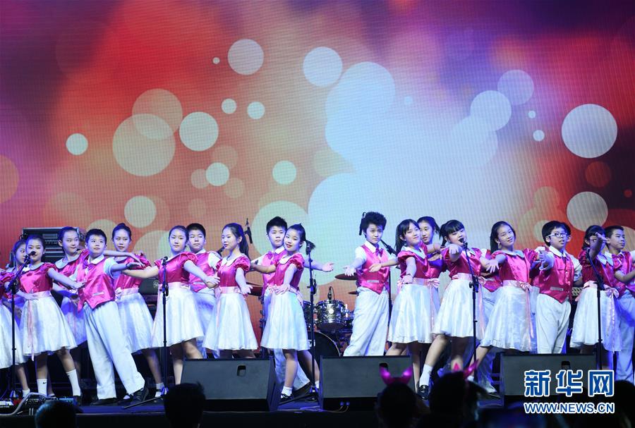 10月23日,“世纪之声”合唱团的孩子们在演唱歌曲《让世界充满爱》。 当日,由北京市朝阳区文化馆主办的第15届潮流音乐节在北京开幕。本届音乐节将持续三天,涵盖摇滚、说唱等多种音乐风格,为乐迷们带来震撼的视听现场感受。 新华社记者 金良快 摄