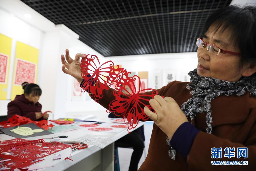 10月24日,在会宁县一处剪纸研习所,民间艺术家展示自己的剪纸作品。 近年来,甘肃会宁县加大对剪纸艺术的传承保护力度,建立研习所,为民间剪纸艺术家提供展示交流的机会,同时定期举办邀请展,在当地中小学开办剪纸课堂,让更多人接触和学习剪纸。 会宁剪纸历史悠久,常见题材有花卉草木、飞禽走兽、戏曲人物、民间传说等,表现形式以窗花、灯笼花和炕围花为多,2011年被列入国家级非物质文化遗产保护名录。 新华社记者 杜哲宇 摄