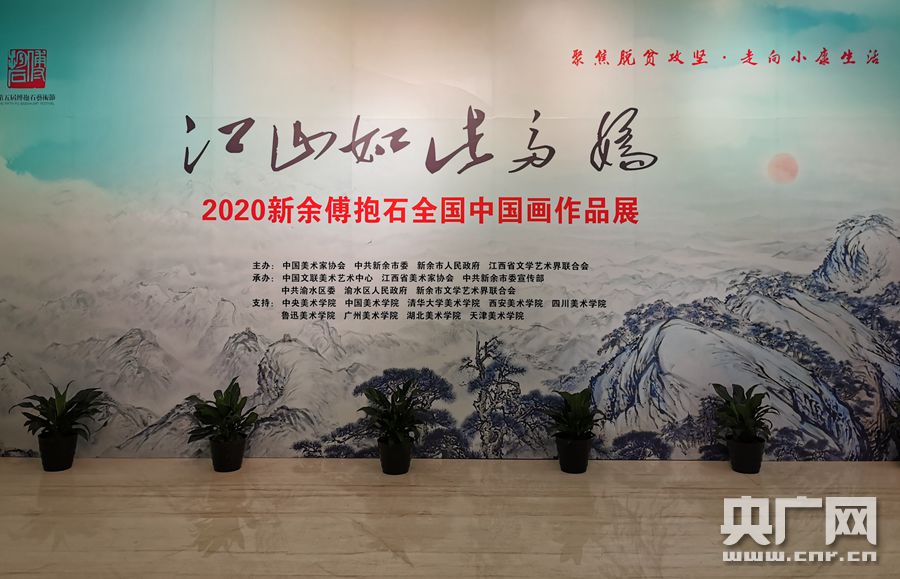 “江山如此多娇”2020新余傅抱石全国中国画作品展现场(央广网记者 魏文欣 摄)