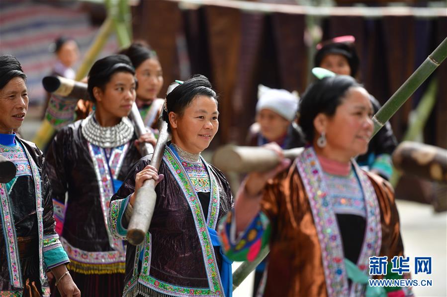 10月25日,乌英苗寨妇女们带着亮布槌参加亮布文化节。新华社记者 黄孝邦 摄