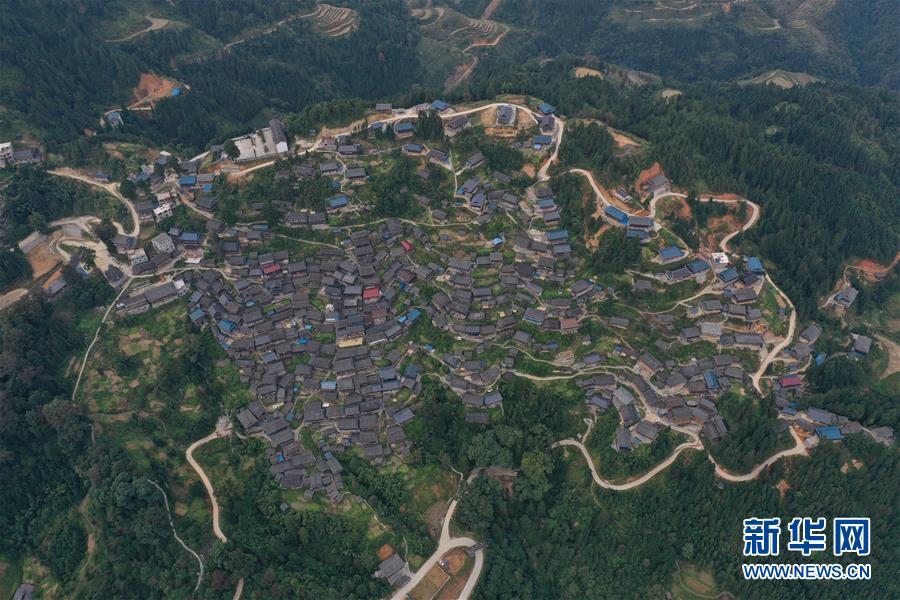 10月25日拍摄的贵州省黔东南苗族侗族自治州榕江县兴华乡摆贝村(无人机照片)。新华社记者 杨楹 摄