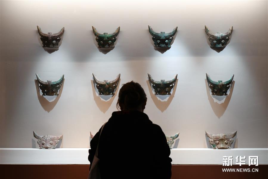 这是在山西酒务头考古成果展上拍摄的兽面形饰(10月24日摄)。 新华社记者 金良快 摄