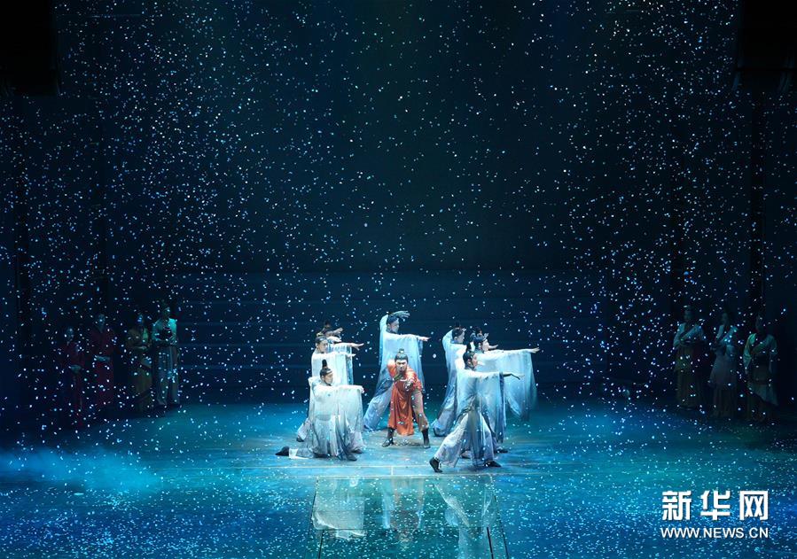 近日,江苏徐州举行国潮汉风·2020徐州摄影展暨第二届淮海经济区摄影文化周活动,由徐州演艺集团歌舞剧院和江苏汉纳国际文化发展有限公司共同打造的大型室内实景剧《徐州之夜·大风歌》是文化周演出之一,该剧在表现方式上强化了声光电的运用,在唯美震撼的视听环境中展示汉文化之美。 新华社记者 才扬 摄