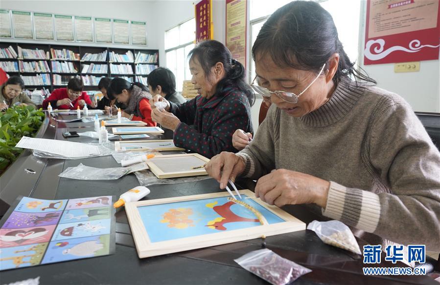 10月26日,在重庆市北碚区澄江镇五一村,村民在体验五谷粮食画制作技艺。 重庆市北碚区的五谷粮食画通过粘、贴、拼、雕等手段,能将平时常见的各种粮食巧妙设计、精心粘贴后变成山水、人物、花鸟、卡通等形象的画作。近年来,当地五谷粮食画非遗传承人多次走进乡村,向居民传授五谷粮食画制作技艺,让更多的人认识了解粮食画的艺术魅力,让这门特色艺术不断传承和发扬。 新华社发(秦廷富 摄)
