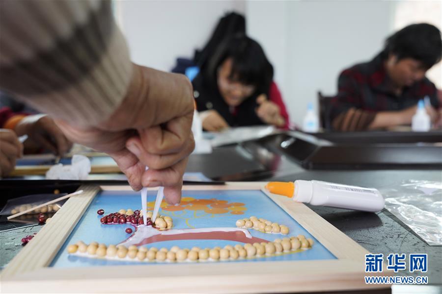 10月26日,在重庆市北碚区澄江镇五一村,村民在体验五谷粮食画制作技艺。 重庆市北碚区的五谷粮食画通过粘、贴、拼、雕等手段,能将平时常见的各种粮食巧妙设计、精心粘贴后变成山水、人物、花鸟、卡通等形象的画作。近年来,当地五谷粮食画非遗传承人多次走进乡村,向居民传授五谷粮食画制作技艺,让更多的人认识了解粮食画的艺术魅力,让这门特色艺术不断传承和发扬。 新华社发(秦廷富 摄)