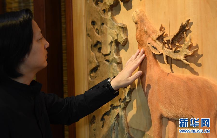 浙江省工艺美术大师陈国华在工作室查看他的木雕作品(10月20日摄)。陈国华将木雕与文人画相结合,并用矿物颜料上色,形成了自己的风格。 新华社记者 翁忻旸 摄