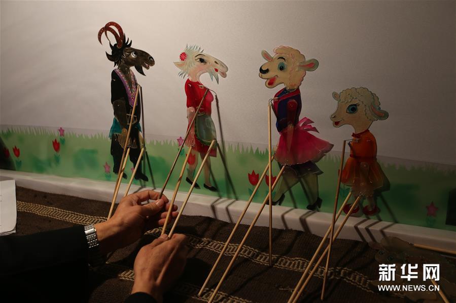 10月27日,在甘肃省庆阳市环县,道情皮影戏传承人许明堂和戏班同事演出新编的皮影戏剧目《三“羊”开泰》。 新华社记者 耿馨宁 摄