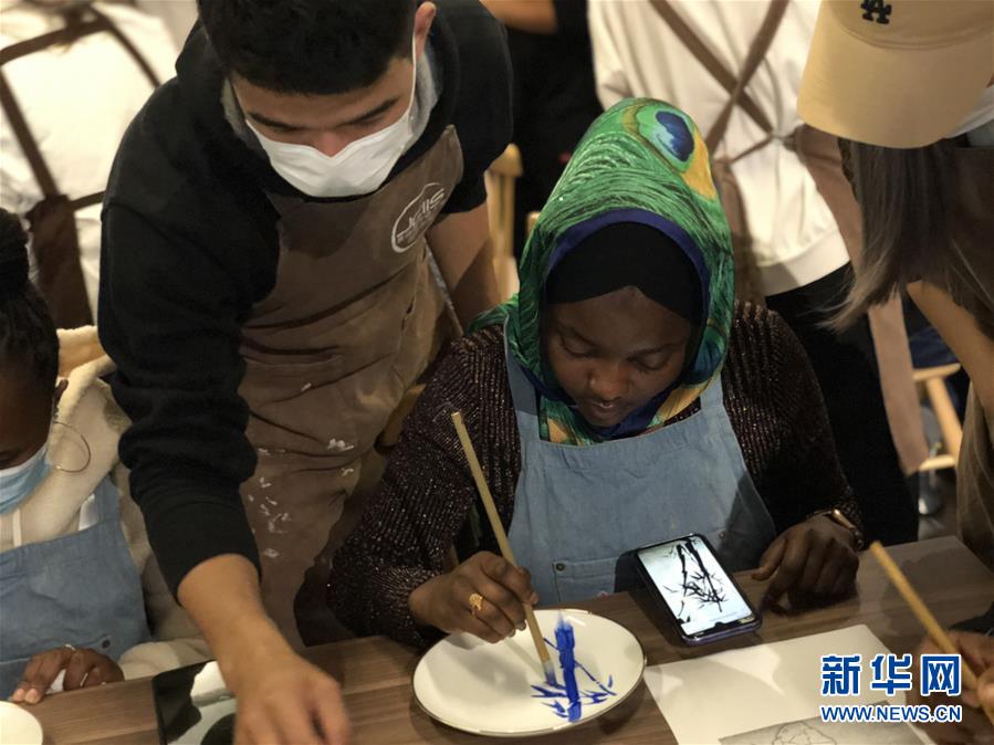 10月28日,非洲在华青年代表在景德镇中国陶瓷博物馆体验陶艺文化。 当日,由外交部、中国宋庆龄基金会、江西省政府共同举办的第五届中非青年大联欢走进江西景德镇,40余名非洲在华青年代表参观了景德镇古窑民俗博览区、江西直升机科技馆、景德镇中国陶瓷博物馆以及陶溪川文创街区,体验陶艺文化、与中国青年陶瓷艺术家交流互动。 新华社记者 曹典 摄