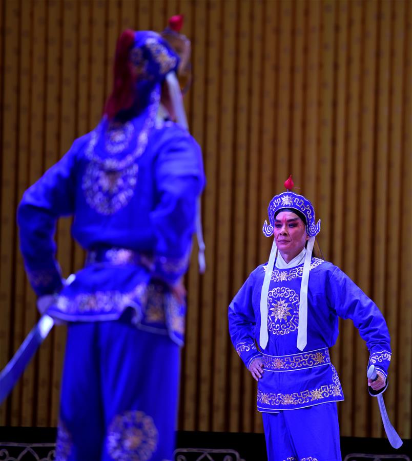 10月27日,演员在河北省石家庄大剧院表演京剧《白帝城》。 从10月27日到29日,“纪念奚啸伯先生诞辰110周年”京剧专场演出活动在河北省石家庄大剧院举行。奚啸伯(1910—1977)生于北京,是我国著名京剧表演艺术家,京剧“四大须生”之一。 新华社发(陈其保 摄)