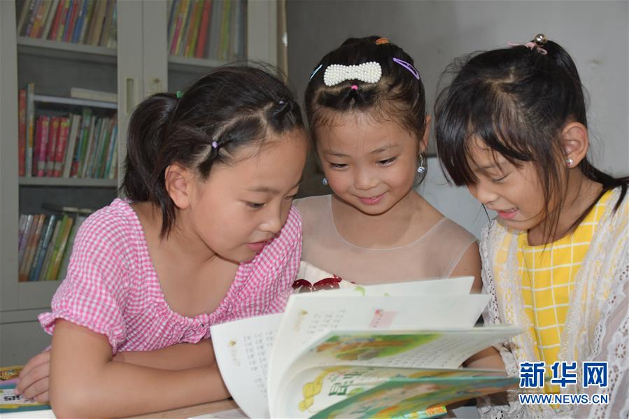 在河南省安阳市内黄县李石村,开设在超市里的图书馆吸引了不少村里的孩子(8月5日摄)。 新华社记者 史林静 摄