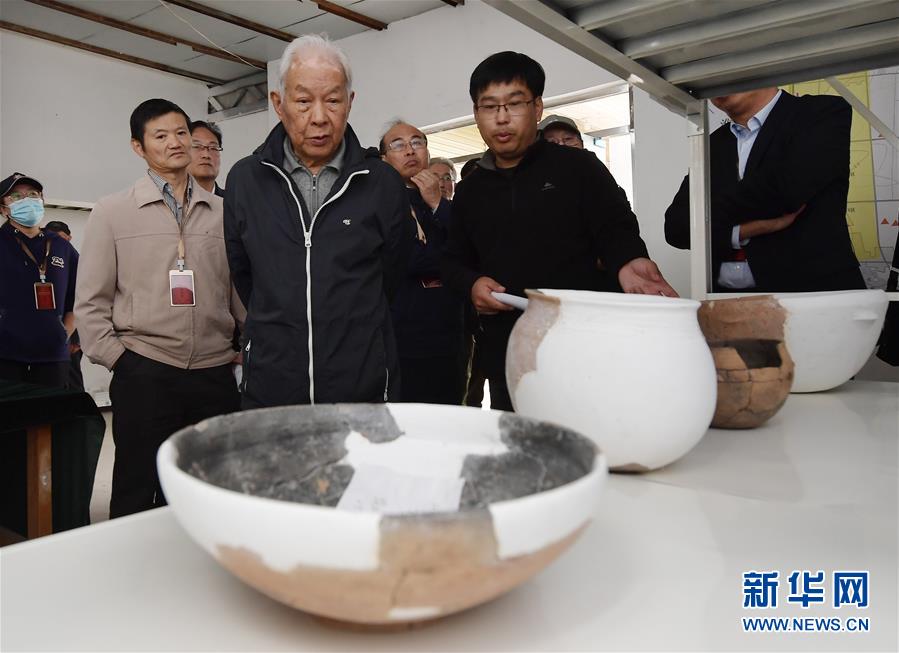 考古专家学者在禹会村遗址文物库房参观土的陶器(10月29日摄)。 近日,安徽蚌埠禹会村遗址聚落考古取得重要成果。在前段考古工作的基础上,工作人员在遗址范围内发现了龙山文化城址。 经初步发掘,该遗址内龙山文化核心分布区发现两段城垣遗迹。城址大部分区域被淮河冲毁,城址复原规模至少18万平方米。城墙内外发现有壕沟环绕,根据壕沟内出土的陶器残片判断,城址可追溯到距今约4400至4100年前的龙山文化早中期。 新华社记者 李贺 摄