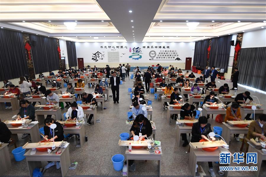 10月31日,参赛选手在善琏镇卜家堰村文化礼堂参加毛笔现场制作比赛。
