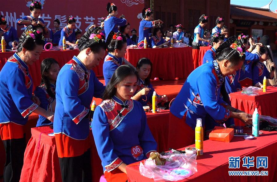 10月31日拍摄的湄洲女发髻技艺表演现场。 新华社记者 褚萌萌 摄