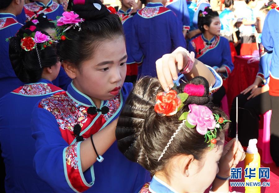 小小湄洲女正在表演妈祖髻技艺(10月31日摄)。 新华社记者 褚萌萌 摄