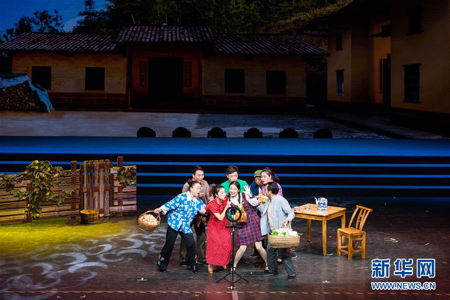 11月3日,来自湖南省浏阳市的演员在表演小品《蹚出新路子》。 当日,由湖南省文旅厅和湖南省扶贫办共同主办的2020年湖南省“欢乐潇湘”精准扶贫优秀文艺作品展演在湖南戏曲演出中心上演。 新华社记者 陈思汗 摄