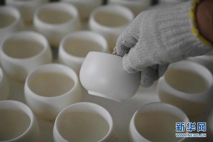 10月20日,徐金宝取出烧制好的白瓷茶杯。新华社记者 宋为伟 摄