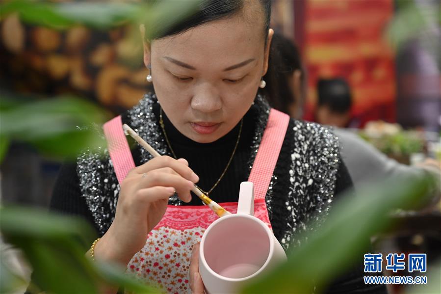 10月21日,在福建省泉州市德化县顺美陶瓷厂,工匠为出口的马克杯上色。 新华社记者 宋为伟 摄