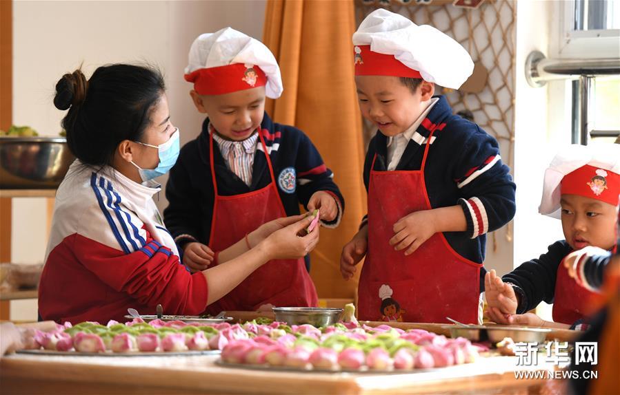 11月7日,河北省石家庄市新华区世纪星幼儿园的小朋友在老师的指导下学习包饺子。当日是立冬节气,河北省石家庄市新华区世纪星幼儿园组织开展“包饺子 知民俗”主题活动,小朋友在老师的指导下一起学习包饺子,体验传统民俗文化。新华社发(许建园 摄)