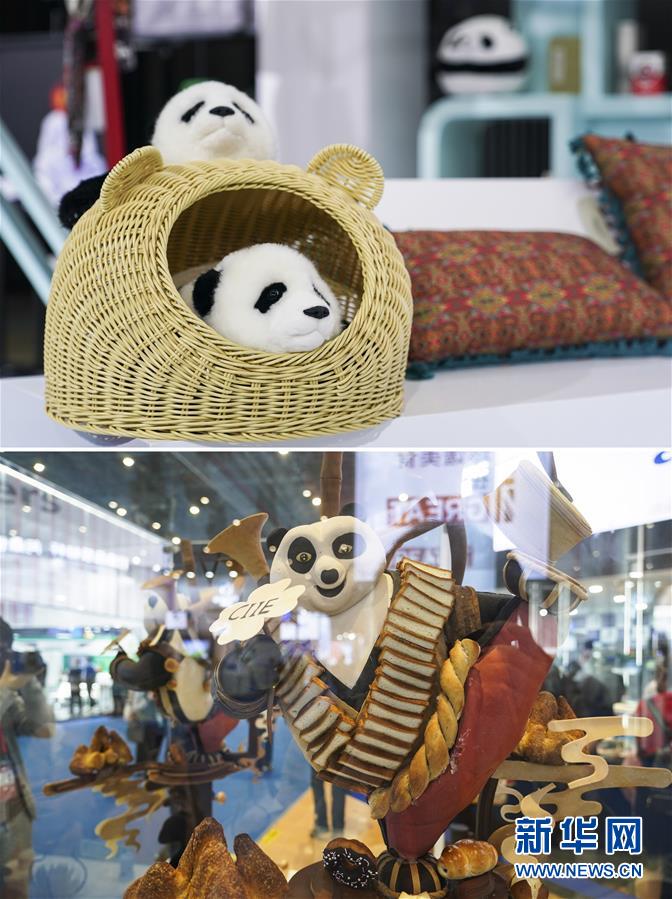 拼版照片:上图为11月9日在进博会四川展台拍摄的文创产品熊猫玩偶;下图为11月8日在进博会食品及农产品展区乐斯福展台拍摄的艺术面包“音乐熊猫”。 第三届中国国际进口博览会为全球贸易供需双方搭起沟通的“桥梁”,这一贸易盛会同时也成为文化交流平台,不同文化在这里“邂逅”。 新华社记者 张豪夫 摄