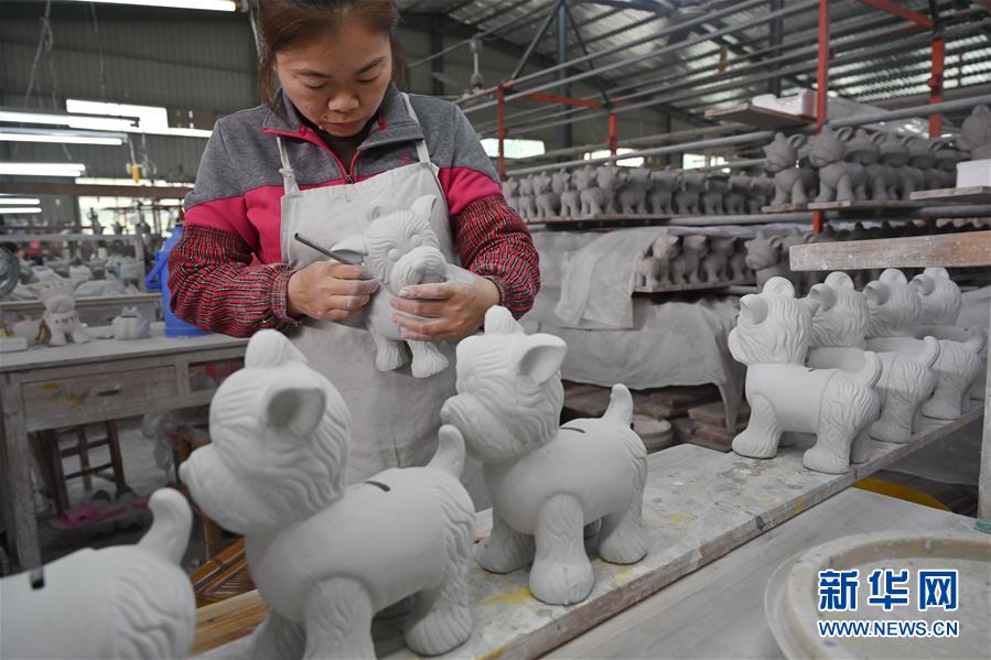 10月21日,在福建省泉州市德化县顺美陶瓷厂,工人制作出口欧美的陶瓷存钱罐。 新华社记者 宋为伟 摄