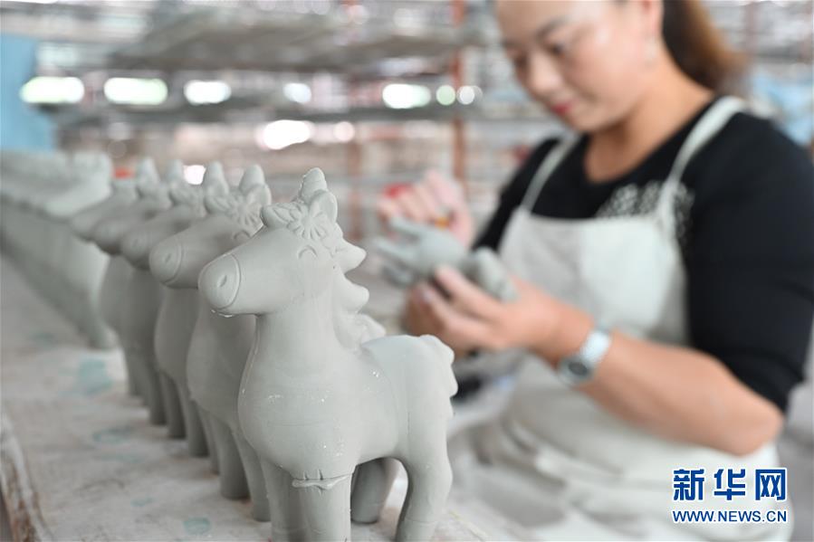 10月21日,在福建省泉州市德化县顺美陶瓷厂,工人制作出口欧美的陶瓷工艺品。 新华社记者 宋为伟 摄