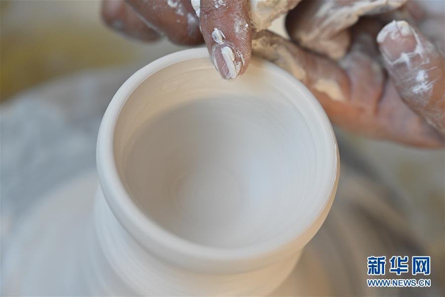 10月20日,徐金宝拉坯制作白瓷茶具。 新华社记者 宋为伟 摄