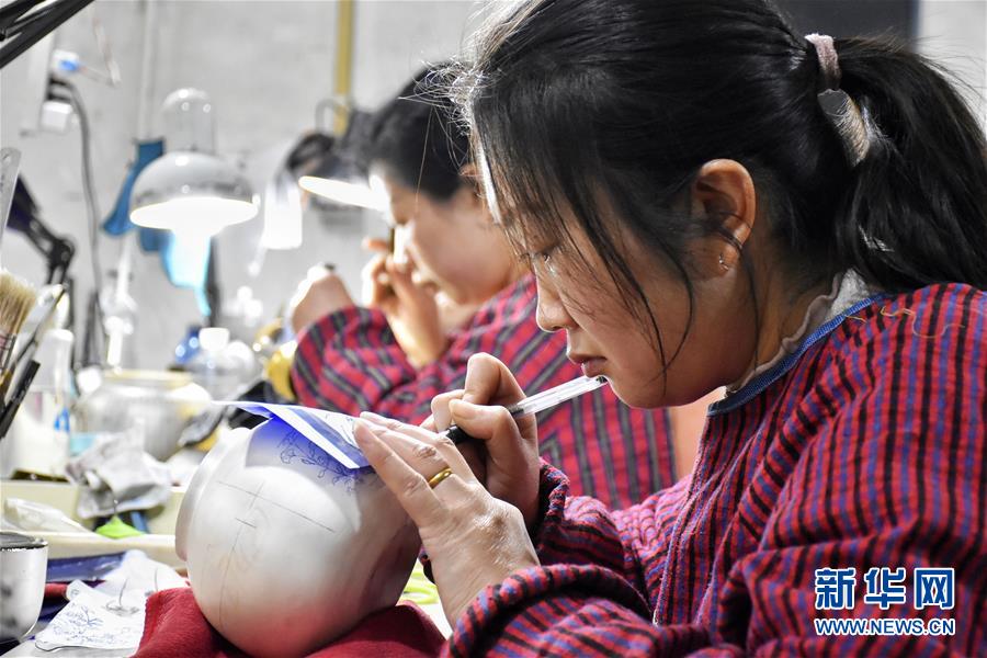 11月11日,在洛阳市洛龙区白马寺镇一家金银器加工企业,工人在金银器上描样。 河南省洛阳市白马寺金银器制作技艺是河南省非物质文化遗产,经过捶打塑形、描样錾刻、雕镂镶嵌、焊接鎏金等多道工序,以手工为主制作各类金银器具。 新华社记者 韩朝阳 摄