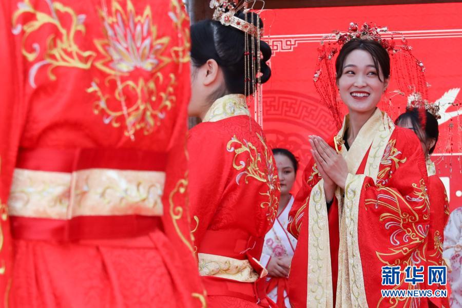 11月16日,新人在婚礼仪式上感谢亲友。新华社记者 欧东衢 摄