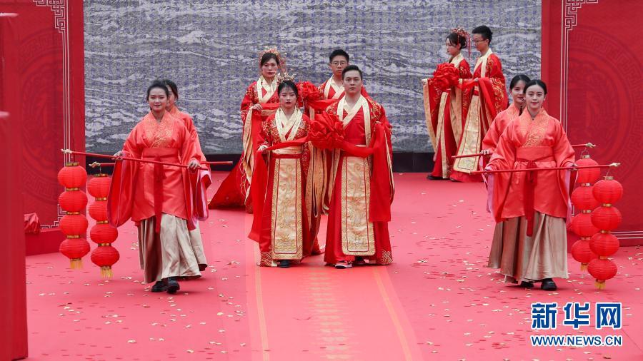 11月16日,新人步入婚礼现场。新华社记者 欧东衢 摄
