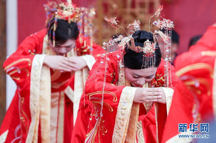11月16日,新人在婚礼现场向天地行礼。新华社记者 欧东衢 摄