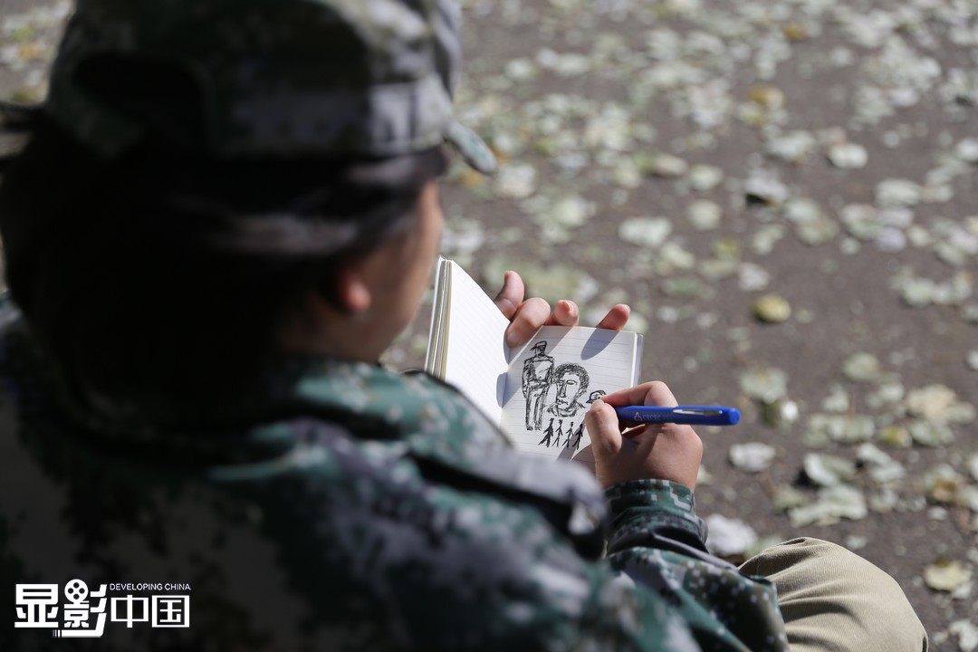 新生军训期间,那日斯格因为身体原因不能参加,但他不想错过大学生活任何一课,每天都来操场。将有趣的人、新鲜事,用自己的文字、画笔记录下来,收集生活的点滴,以便日后创作。新华网 李倩摄