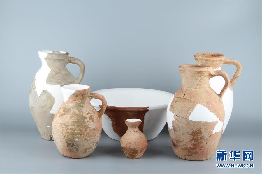 新疆唐朝墩古城浴场遗址出土的陶器(2019年10月17日摄)。 新华社发(中国人民大学考古文博系供图)