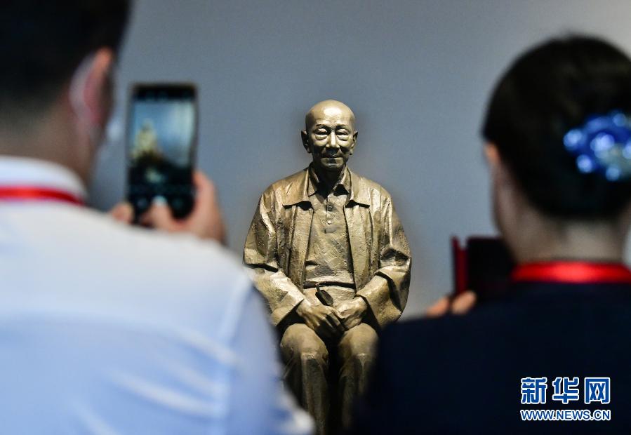 11月22日,参观者在林风眠纪念馆拍摄林风眠塑像。新华社记者 李贺 摄