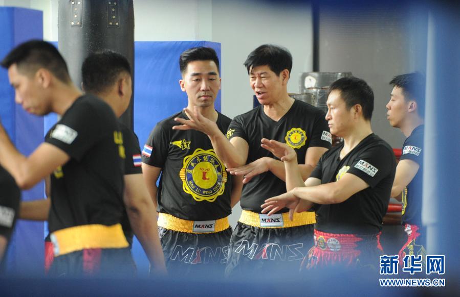 11月21日,广州市番禺区卢氏本能咏春拳训练基地的卢彦敏(右三)为学员传授咏春拳的技法。