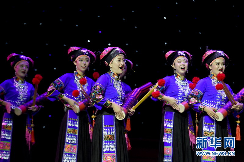 壮族渔鼓《石头开花》剧照(11月23日摄)。新华社发(阮坤瑾摄)