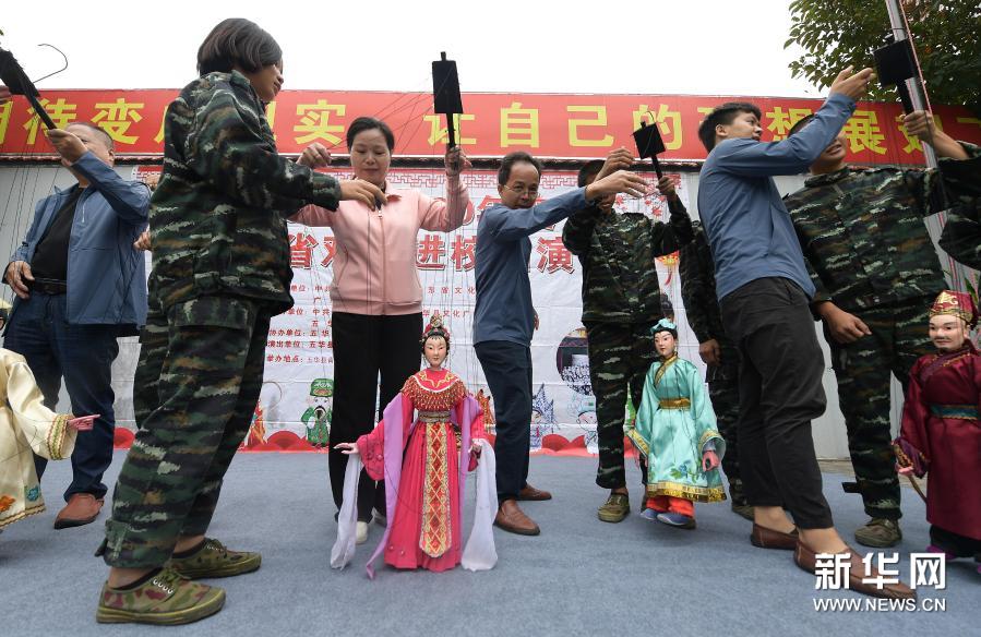 11月23日,一场别开生面的国家级非物质文化遗产——五华提线木偶展演走进了广东省梅州市五华县青少年启发培训学校,这是一所专门针对有弃学、厌学、上网成瘾等不良行为习惯的青少年进行行为矫正的学校。梅州市五华县提线木偶传习所的这场展演给孩子们带来快乐的同时,也让他们通过木偶戏学习了成语故事等知识。新华社记者 李贺 摄