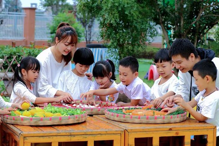 孩子们在老师的带领下通过“认一认农作物”“田园看穗”“丰收搬运赛”等趣味活动学习传统节气知识。