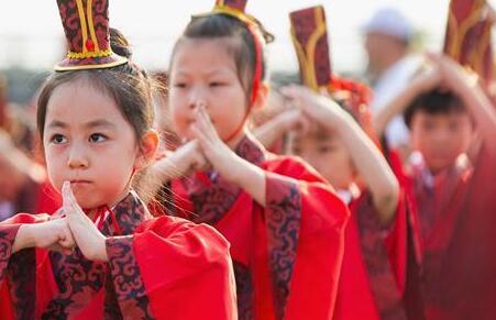 河北省武安市中山小学组织开展新生“入泮礼”仪式,300余名新生身着传统服饰参加端正衣冠、点砂开智、启蒙开笔等活动,体验传统习俗。