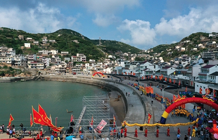 2020年9月10日上午,舟山市嵊泗县黄龙乡南港村码头广场鼓声阵阵、旌旗猎猎、“蛟龙腾飞”,第十七届黄龙渔民开捕节在此隆重举行。
