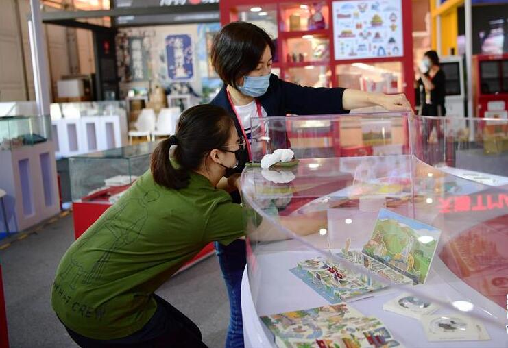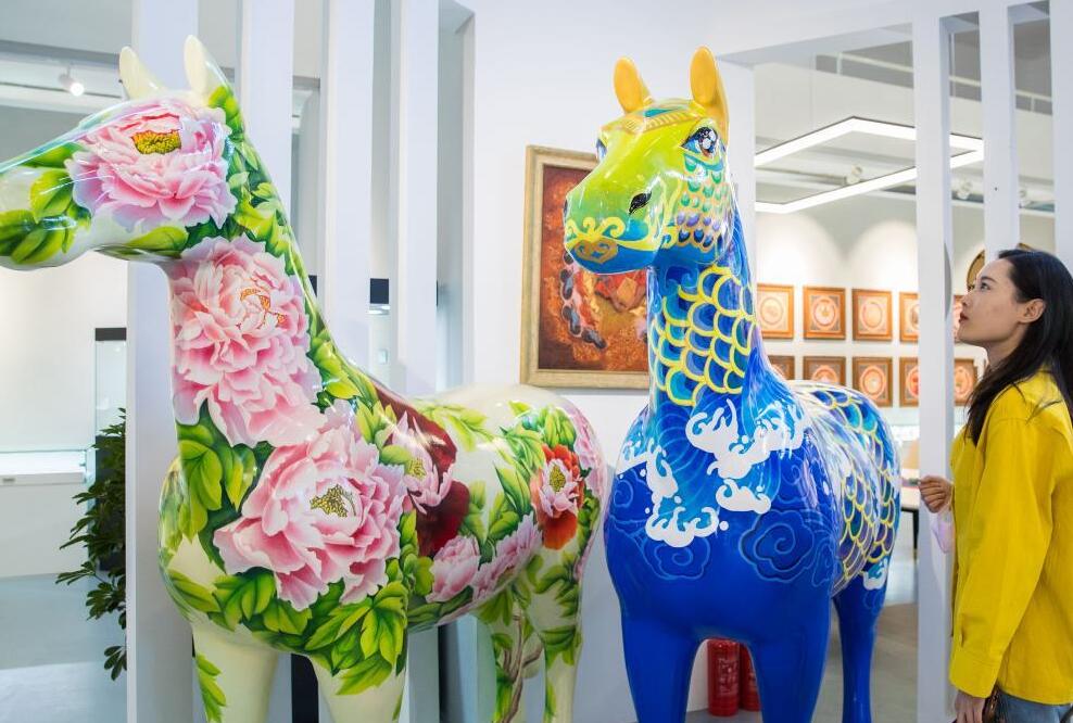 2020年9月6日,呼和浩特市,市民在内蒙古展览馆参观以"马文化"为主题的文创产品。当日是内蒙古自治区第16个“草原文化遗产保护日”,"内蒙古民族文化——传统工艺现代创意专题展"在位于呼和浩特市的内蒙古展览馆开展,千余款传统工艺品和文创产品,线上线下展示展销。