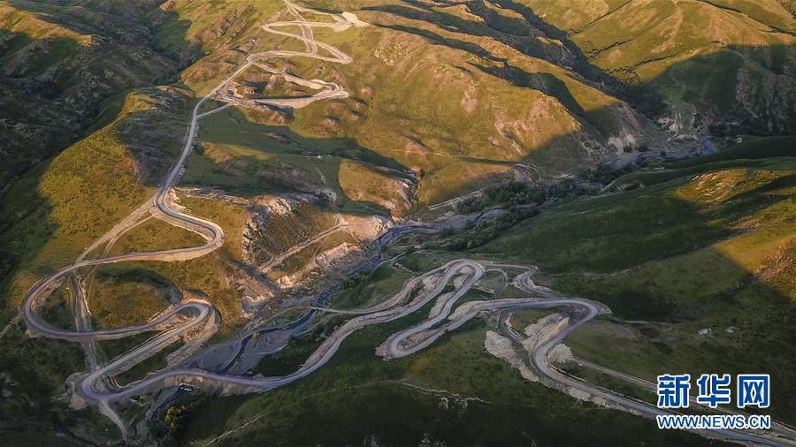 这是在新疆裕民县巴尔鲁克山深处拍摄的一处改造后的牧道(6月22日无人机拍摄)。新华社记者胡虎虎摄
