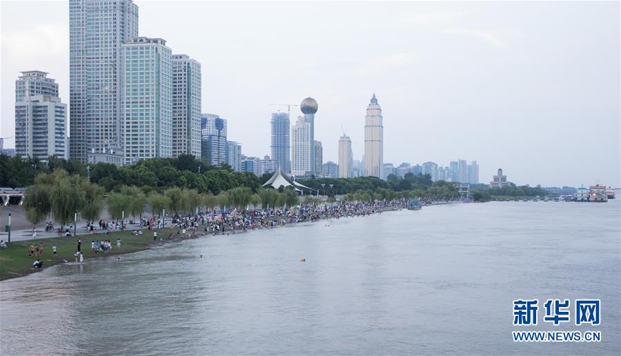 8月4日,人们在武汉汉口江滩边游玩。 自1998年综合整治江滩以来,湖北武汉市已经建成总长约58公里、总面积约670万平方米的两江(长江和汉江)四岸江滩滨水空间,成为一道独特的风景线。 新华社记者 金立旺 摄