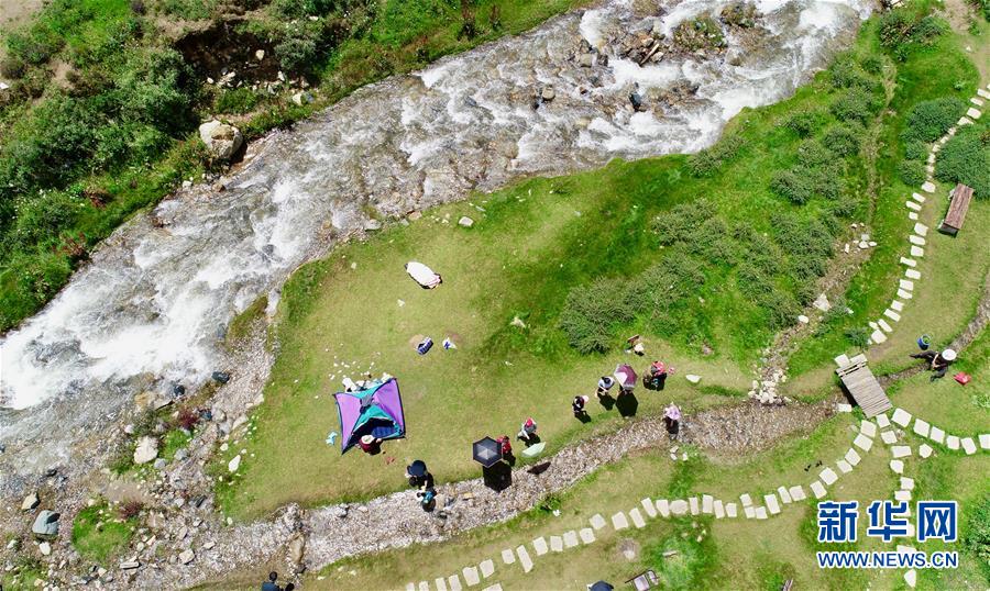 拉萨市民在近郊达东村踏青,欢度周末时光(8月4日无人机拍摄)。 新华社记者 普布扎西 摄