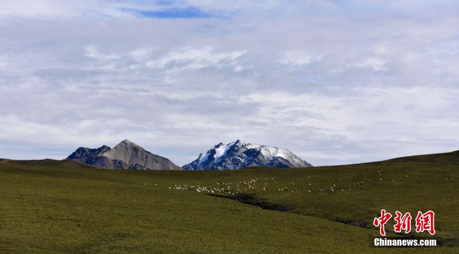 祁连山初秋迎降雪 山顶白雪皑皑美景养眼