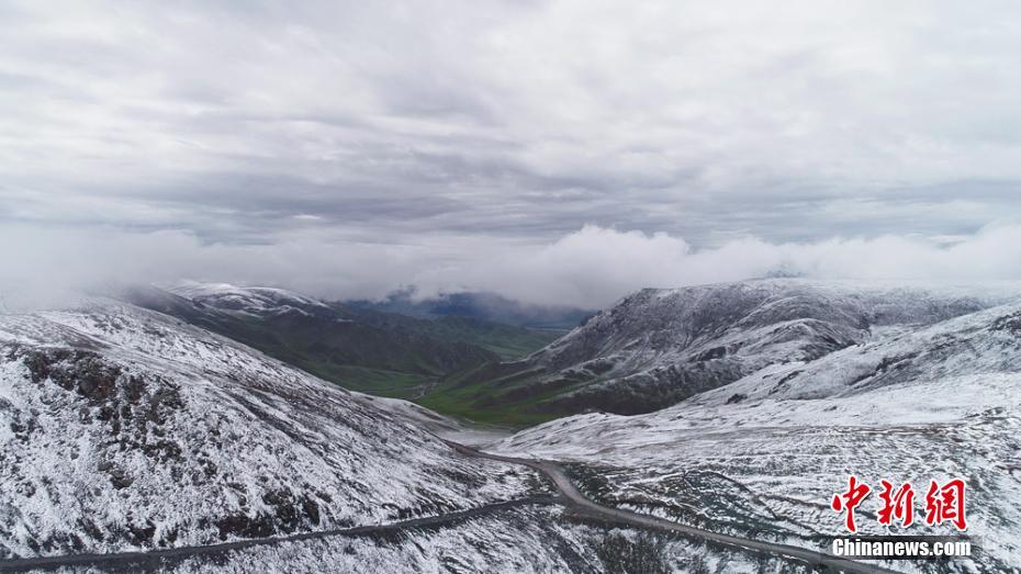 祁连山初秋迎降雪 山顶白雪皑皑美景养眼