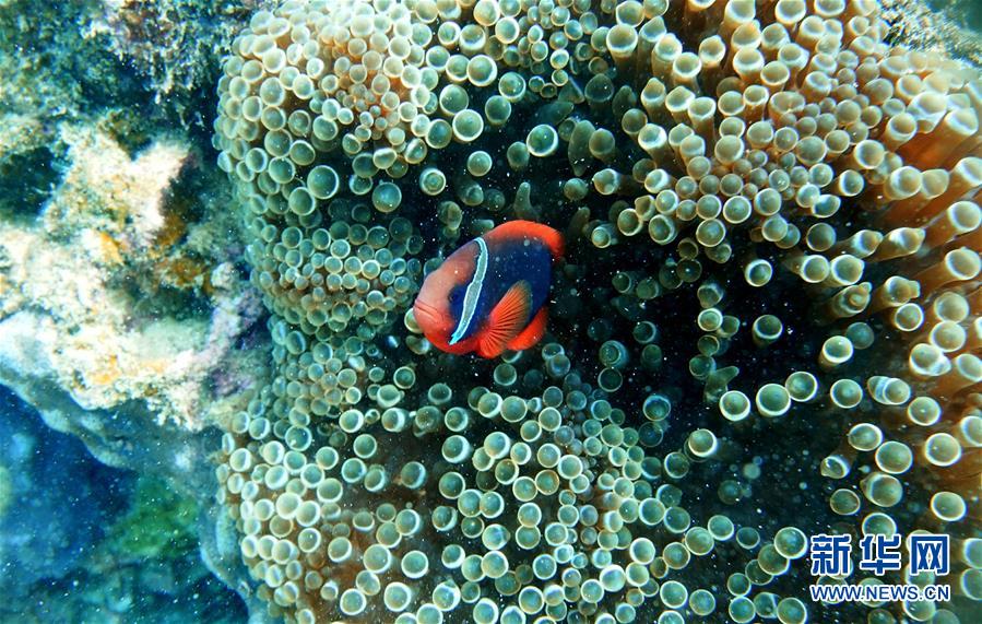 9月12日,在分界洲岛海域,一条小丑鱼在海葵附近游弋。 十多年来,海南省分界洲岛一直致力于珊瑚的保护和培育,并在海洋专家的指导下投放人工礁,为珊瑚生长提供条件,从而为鱼类提供适宜的生存环境。如今的分界洲岛海域珊瑚礁生态系统较为完好,吸引了大量游客前来旅游观光,体验身处鱼群中的潜水乐趣。 新华社记者丁旭摄