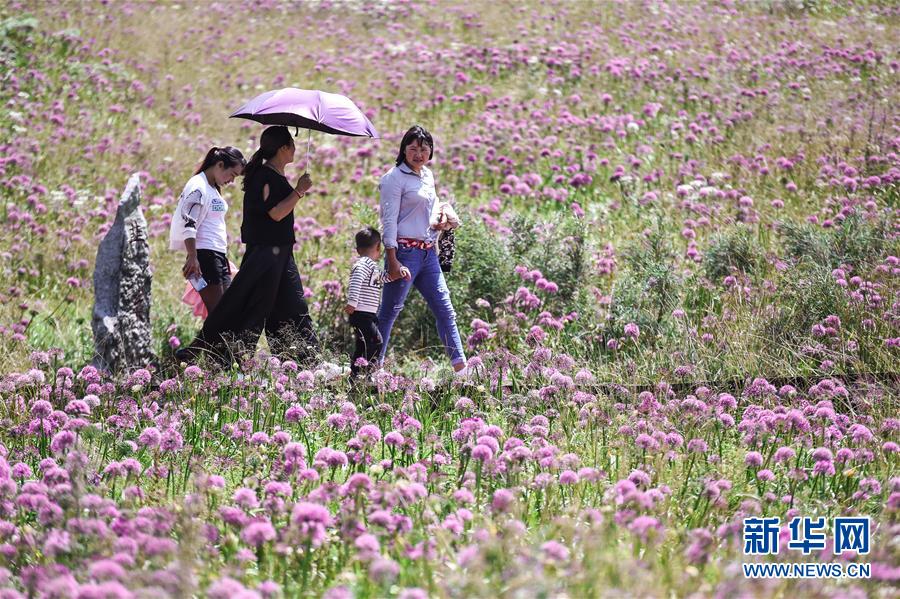 游客在贵州六盘水市韭菜坪景区游玩(9月5日摄)。 新华社记者 陶亮 摄