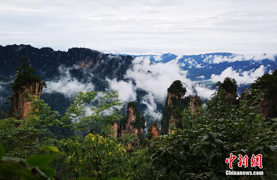 9月22日,中秋小长假的第一天,一场秋雨过后的湖南张家界武陵源风景区秀美如画,轻盈的云雾时而在山谷间流淌,时而缓缓地弥漫在峰林之巅,令中外游客流连忘返。吴勇兵 摄