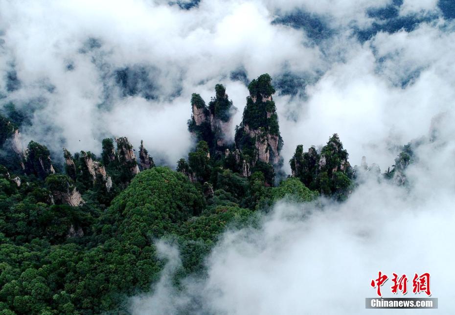 张家界武陵源:云绕峰林醉金秋